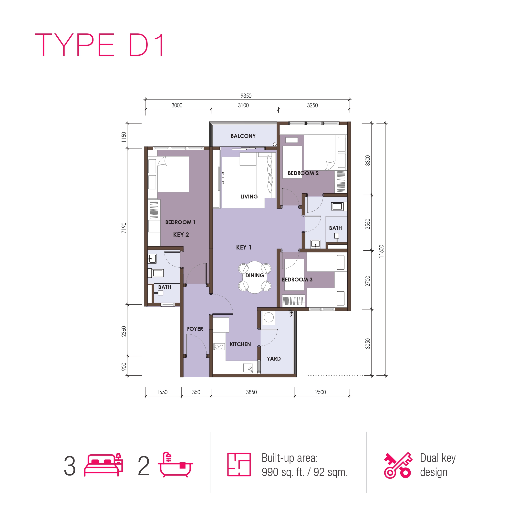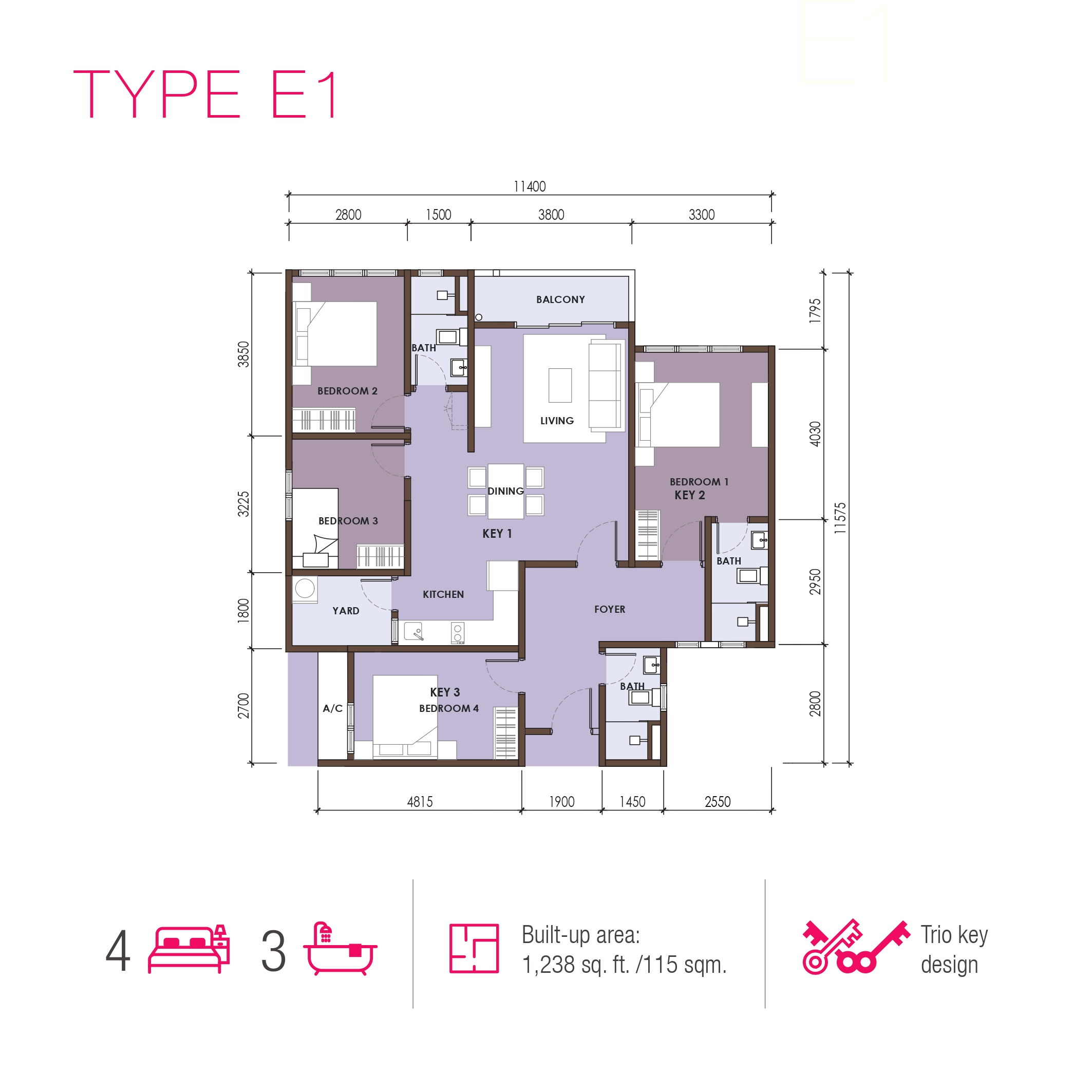 700 - 1,238 sq. ft. - Dual & Trio Key Design